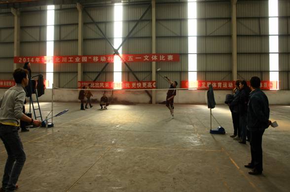 為慶祝五一國際勞動(dòng)節(jié),豐富物產(chǎn)北川工業(yè)園區(qū)職工業(yè)余文化生活,陶冶職工情操,提高職工整體素質(zhì),創(chuàng)建和諧班組,推動(dòng)企業(yè)文化建設(shè),激勵(lì)全員職工積極投身生產(chǎn)經(jīng)營和項(xiàng)目建設(shè),推動(dòng)公司"兩提一降"工作,從2014年4月21日開始了物產(chǎn)北川工業(yè)園區(qū)"移動(dòng)杯"慶五一文體系列比賽活動(dòng)。