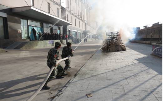 青海物產(chǎn)集團(tuán)黨委書記、現(xiàn)代物流公司董事長白家林蒞臨演練現(xiàn)場指導(dǎo),朝陽派出所領(lǐng)導(dǎo)、北區(qū)消防大隊派員觀摩、指導(dǎo)此次演練工作。集團(tuán)系統(tǒng)兄弟單位相關(guān)人員也到現(xiàn)場觀摩交流。演練由公司總經(jīng)理李朝陽任總指揮,黨支部書記、副總經(jīng)理竇子賢任副總指揮,商場管理人員、保衛(wèi)、保潔、義務(wù)消防隊參加了演練。