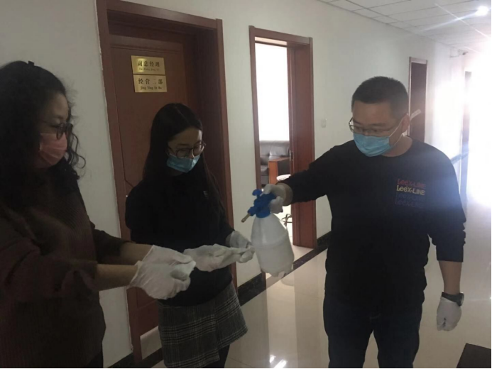 守護(hù)職工筑牢"安全防線":物產(chǎn)配送公司黨委通過配發(fā)酒精40公斤、84消毒液6瓶、消毒濕巾等防控器具,及時(shí)組織黨員指導(dǎo)職工進(jìn)行防控工作,重點(diǎn)對宿舍、辦公室、值班室、洗手間門把手、辦公桌椅等進(jìn)行噴灑消毒。