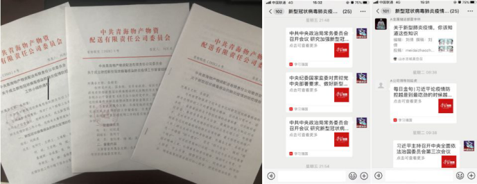 公司黨委按照"早發(fā)現(xiàn)、早報(bào)告、早隔離、早治療"的要求,立即啟動(dòng)應(yīng)急響應(yīng)機(jī)制。一是在第一時(shí)間,成立以黨委書記為組長(zhǎng)的新型冠狀病毒感染的肺炎防控工作小組和防控新型冠狀病毒感染肺炎疫情工作督查組,統(tǒng)一指揮協(xié)調(diào)疫情防控工作。二是所屬黨支部、團(tuán)支部分別成立黨員突擊隊(duì)和青年突擊隊(duì),奮戰(zhàn)疫情防控第一線,充分發(fā)揮黨支部戰(zhàn)斗堡壘、黨員先鋒模范、團(tuán)員青年骨干作用。三是制定《新型冠狀病毒感染的肺炎疫情防控措施》,成立統(tǒng)籌協(xié)調(diào)、輿情監(jiān)控報(bào)道、后勤保障、安全保衛(wèi)等4個(gè)工作小組,明確職責(zé)分工、統(tǒng)籌推進(jìn)工作落實(shí)。四是利用微信建立新型冠狀病毒感染的肺炎疫情防控工作小組群,多頻次、高密度交流工作情況、研究分析疫情、查找薄弱環(huán)節(jié)、商定下步工作舉措,各項(xiàng)防控工作有序開展。截止目前,公司領(lǐng)導(dǎo)、員工分享了52條衛(wèi)生防疫知識(shí),讓大家對(duì)新型冠狀病毒感染的肺炎疫情有了更充分的認(rèn)識(shí)和更有效的防范措施。