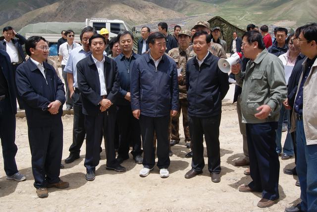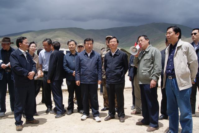 6月19日,中共中央政治局委員、國(guó)務(wù)院副總理、國(guó)務(wù)院抗震救災(zāi)總指揮部總指揮回良玉率領(lǐng)相關(guān)部委領(lǐng)導(dǎo),在青海省委書(shū)記強(qiáng)衛(wèi)、省長(zhǎng)駱惠寧、副省長(zhǎng)馬順青的陪同下,來(lái)到正在晝夜施工建設(shè)的青海物產(chǎn)玉樹(shù)建材物流集散中心,視察災(zāi)后重建物資儲(chǔ)備情況和集散中心工程建設(shè)情況。集團(tuán)總經(jīng)理王玉輝向中央領(lǐng)導(dǎo)和省領(lǐng)導(dǎo)詳細(xì)匯報(bào)了建材物流集散中心建設(shè)規(guī)模和鋼材、水泥、木材三大類物資收儲(chǔ)情況。同時(shí)表示,青海省物產(chǎn)集團(tuán)總公司將一如既往,全力以赴支援玉樹(shù)災(zāi)后重建,與各路建設(shè)大軍一道,為建設(shè)美好綠色新玉樹(shù)貢獻(xiàn)力量。聽(tīng)完匯報(bào),回良玉副總理非常高興,并做出重要指示,要做好統(tǒng)籌組織建材物資的采購(gòu)和調(diào)運(yùn)工作,努力保障供應(yīng),確保質(zhì)量,降低成本。回良玉副總理及省領(lǐng)導(dǎo)與集團(tuán)領(lǐng)導(dǎo)、工作人員合影留念。