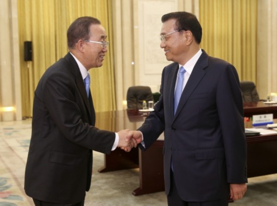 李克強(qiáng)總理會(huì)見聯(lián)合國秘書長潘基文時(shí)說:"人類面臨的最大挑戰(zhàn),是在處理'減貧'和'應(yīng)對氣候變化'兩個(gè)問題的過程中,取得一個(gè)平衡點(diǎn)。"