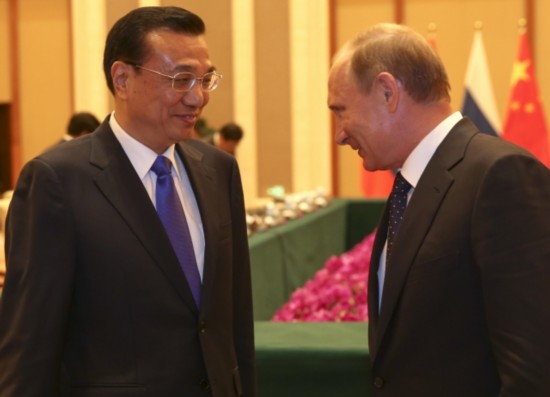 李克強(qiáng)總理會(huì)見俄羅斯總統(tǒng)普京時(shí)說:"中俄兩國是戰(zhàn)略伙伴,互為最大鄰國。共同維護(hù)二戰(zhàn)勝利成果,反對歪曲篡改二戰(zhàn)歷史,這是我們的共識(shí),也是對世界正義的伸張。"